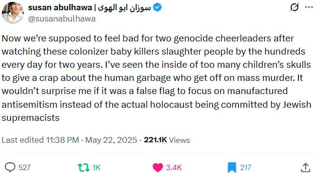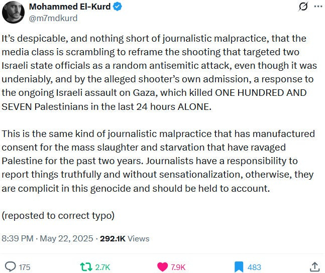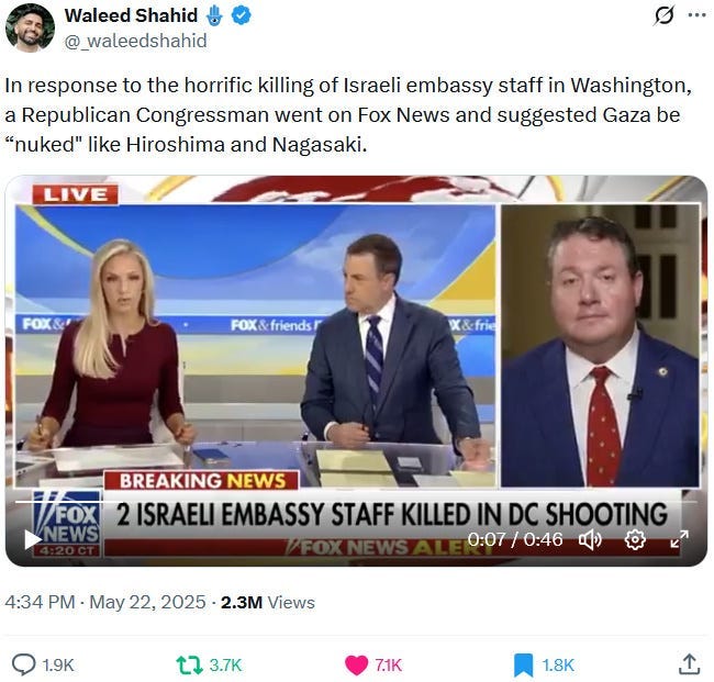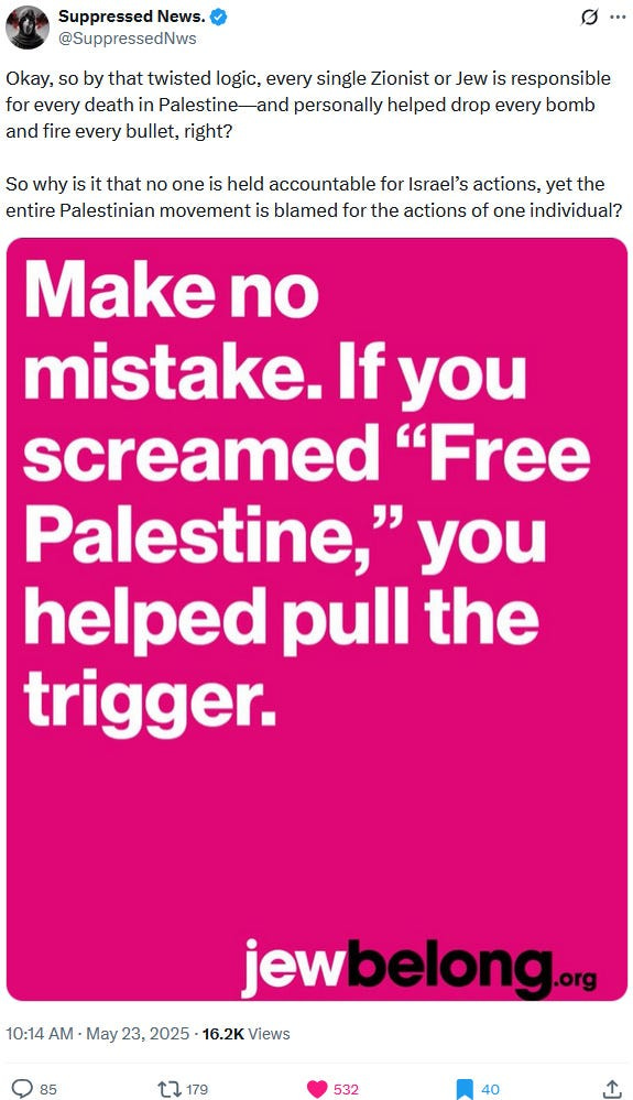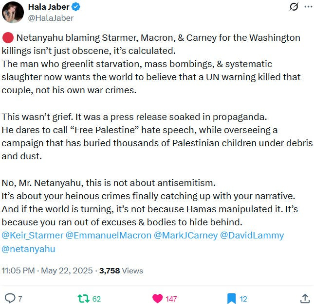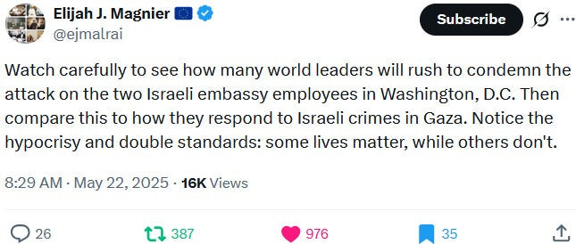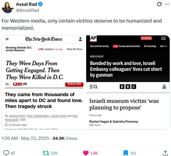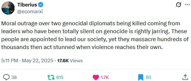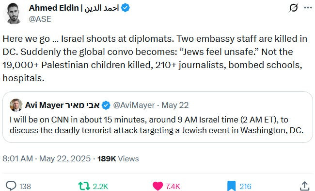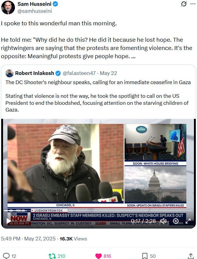 Ziofascists also exploit the alleged diplomat shooting in Washington to distract from their own diplomat shooting in Jenin on May 21, 2025 and from their genocide at large: