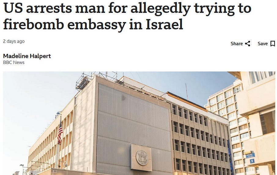 7. May 19, 2025: Jewish Ziofascist Joseph Neumeyer Attempts to Firebomb the US Embassy in Tel Aviv