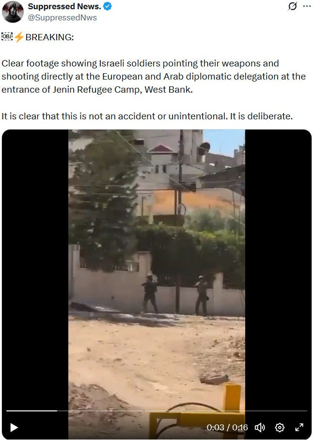 1. Ziofascist IDF Settlers Fire Shots at a Delegation of International Diplomats in Jenin, West Bank