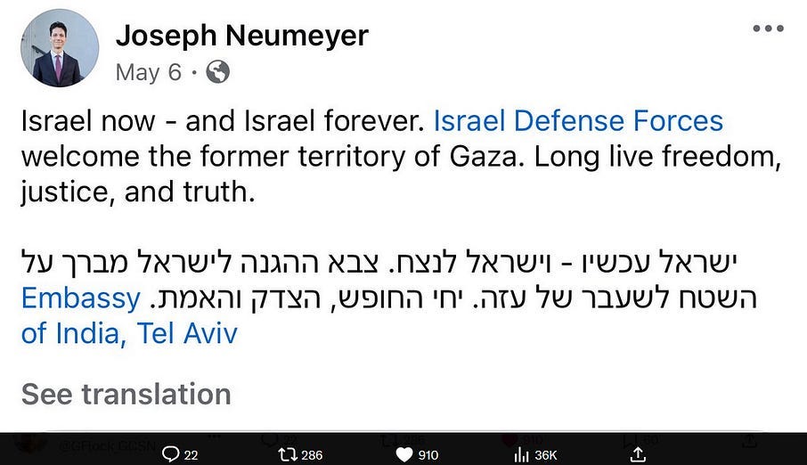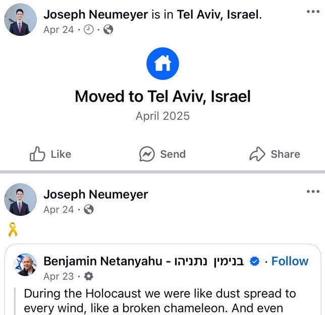 A likely reason why Neumeyer publicly opinionated not just against shady business rival Trump but against America and the West in general is due to the latter publicly and at least performatively dropping support for Netanyahu and the Ziofascist terrorist state (see section 1 of this article).