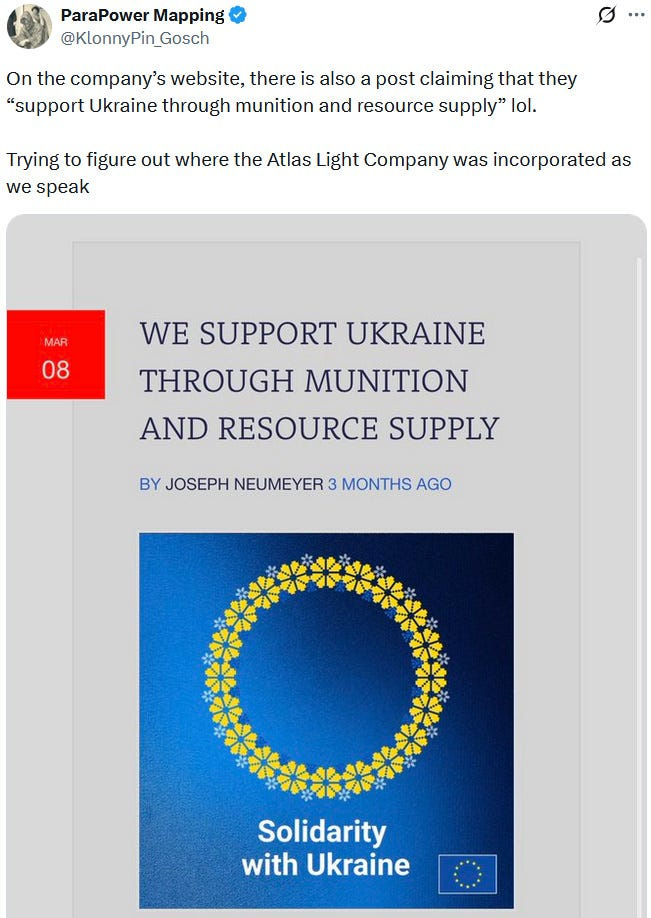 More background information about the shitlib Ziofascist Neumeyer and his coincidentally Ukraine-involved Atlas Light Company (note that, if the July 13, 2024 assassination attempt on Trump was genuine, it was likely to come from pro-Ukraine circles):